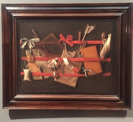 Невероятно популярные в то время обманки художника Samuel van Hoogstraten, демонстрирующие мастерство автора, с его работами изображающими перспективу мы встречались в музее Гааги.