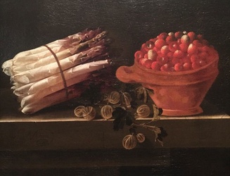 Вадим Анатольевич обратил внимание на натюрморты A. Coorte. Как правило композиция состоит из одного или пары пердметов на темном фоне – овощей , фруктов или ягод. Его излюленный мотив это пучок спаржи, который художник изображает с мастерской точностью и реалистичностью.