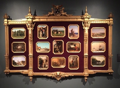 Хотя тема поездки живопись 17 века, наше внимание остановилось на данном предмете в экспозиции, датируемым 19 веком. Резные рамы с окошками для миниатюр специально изготавливался как подарок королю.
