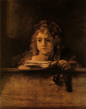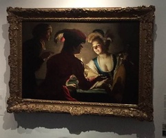 Другой художник - ГЕРАРД ВАН ХОНТХОРСТ (Утрехт, 1590-1656, там же) провел в Италии годы молодости (1610-1621). Хонтхорст ближе всего к работам зрелого стиля Караваджо. Искренняя взволнованность рассказа, мастерство светотени и композиции и дар колориста, отличаю его картины. В Италии он получил прозвище Герардо делла Нотте (т. е. Герард Ночной), отражающее его пристрастие к сценам с искусственным освещением. Свеча или факел у Хонтхорста не только подчеркивают объем и придают неожиданный эффект и остроту композиции, но и сообщают сцепе особую интимность. Картина «Сводня», хорошо известная в нашей стране, изображает типичный голландский сюжет.