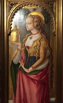 В собрании встретили картину любимого всеми Карло Кривелли «Мария Магдалена». Художник отсылает зрителя к эпизоду первой встречи Марии Магдалины с Иисусом, о чем свидетельствует кувшин с маслом. Теневые эффекты подчеркивают кончик туфли Магдалины, направленный на зрителя, а ее элегантно уложенные волосы отбрасывают тень на нимб над головой.