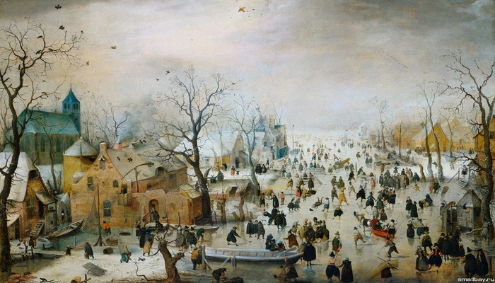 Типичные сюжеты голландской живописи. Оживленные зимние сцены с различными забавами на льду были любимым сюжетом Хендрика Аверкампа. Его картины вызывают в воображении замерзшие каналы и реки, по которым катаются на коньках большую часть своей жизни он провел в портовом городе Кампене в Зёйдерзе (залив в Северном море) – там служил фармацевтом и городским врачом его отец. Хендрик был немым, за что получил прозвище «немой как Кампена»