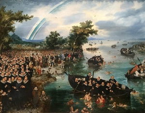 Эта аллегорическая картина изображает усердие, с которым протестантская и католическая церкви завоевывали души во время 12-тилетнего перемирия. На картине мы видим образы и иллюзии происходившего события, на левом берегу собрались протестанты из Северных Нидерландов, а напротив расположились южане-католики, разделяет два берега река. Между берегов раскинулась радуга, символ мира. Фигуры в лодках стараются вытащить как можно больше людей, причем протестанты имеют явное преимущество перед католиками. Очевидно, что симпатии Адриана ван де Венне отданы протестантам.