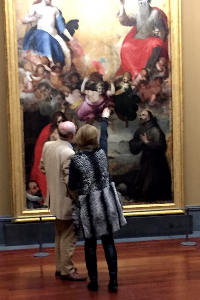 Вадим Анатольевич патетично рассказывает о знаменитых тициановских портретах Папы Павла III.