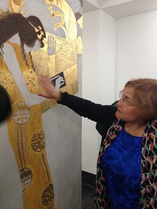 Наше внимание привлек знаменитый экспонат музея - позолоченный эскиз фриза для дворца Стокле в Брюсселе работы Густава Климта.