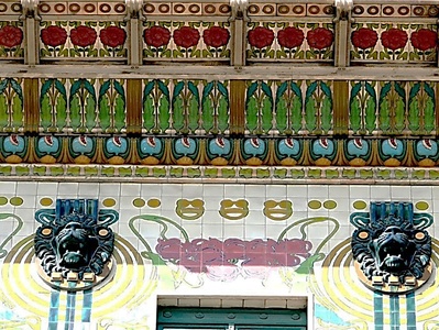 Барельефы львов на фризе Дома с майоликой
