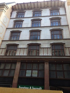 Отличительным элементом стиля Венский модерн являются орнаменты, которые используются, прежде всего, во внешнем оформлении зданий. Благородный вид зданиям придает мрамор, стекло, плитка, металлические аппликации, разноцветная лепнина или позолота. Мы посмотрели и другие здания, выполненные в стиле Венского модерна. Поражает своими эстетическими и практическими свойствами глазурованная майолика фирмы Винербергер (Wienerberger), украшающая фасад Доходного дома с майоликой (Majolikahaus) (дом №40), который был построен на улице Винцайле (Wienzeile) в 1898 году Отто Вагнером неподалеку от Нашмаркета.