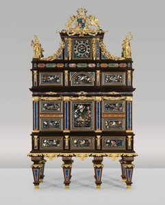 В Музее Лихтенштейна у нас была редкая возможность восхититься самым дорогим предметом мебели в мире - кабинетным бюро «Бадминтон». Он является образцом уникальной техники «Пьетра Дура» (Pietra Dura). Pietra Dura в переводе с итальянского обозначает «поделочный камень». Эту технику еще называют флорентийской мозаикой, так как она представляет собой декоративную инкрустацию полудрагоценными камнями и разными породами деревьев. Кабинетное бюро было заказано в 1726 году третьим герцогом Бофорским – Генри Сомерсетом – представителем одной из знаменитых фамилий Британской короны. Заказ был размещен в мебельных мастерских во Флоренции, принадлежащих Великому герцогу Тосканскому. Это были не просто мастерские, это был один из центров мебельного искусства Италии того времени, который уже тогда диктовал моду в мире мебели и изготавливал уникальные изделия.