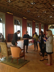 На этот же день была запланирована экскурсия по Аукционному дому Кински, где нас встретил шампанским директор по связям с общественностью. Она представила нашей группе печатную продукцию об аукционе и о самом барочном дворце, в котором расположился Аукционный дом Кински. Мы получили подробную информацию об истории здания и аукционного дома, а также о топ-лотах торгов.
