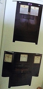 Кабинетное бюро «Бадминтон» выполнено из черного дерева, а десять его ящиков - из кедра. Для бюро в качестве инкрустирующего материала были выбраны различные декоративные камни – яшма, малахит, лазурит. Но на традиционных материалах выбор не ограничился. Для украшения были также использованы кварц, аметист, лазурит и позолоченная бронза.