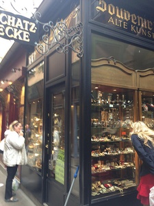 После экскурсии мы зашли в кафе Figlmueller, в котором попробовали настоящий венский шницель. Они здесь очень большие и очень вкусные. Рядом с кафе находился антикварный магазин, куда мы с удовольствием заглянули.