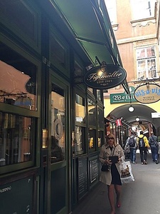 Каждый из нас был уже готов обнаружить на Блошке что-то такое, что позволило бы ему сразу перейти на уровень экспертов мирового уровня, но мы здорово проголодались и решили на какое-то время предпочесть славу рыбному ланчу в павильоне "CityFish" на улице Нашмаркт (Naschmarkt) . Там мы не только показывали друг другу антикварные сувениры, приобретенные на Блошке, но и поднимали бокалы с горьковатым и пряным Аперолом(Áperol) за наши будущие находки и открытия.