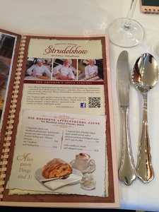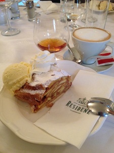 В этот день мы ужинали в знаменитом кафе CaféResidenz, где можно увидеть, как делается настоящий венский штрудель, и полакомились этим изысканным десертом.