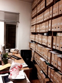 Несколько этажей маленьких комнат с коробками в которых строго систематизированы все накопленные материалы об искусстве. В офисе постоянно работают несколько человек.