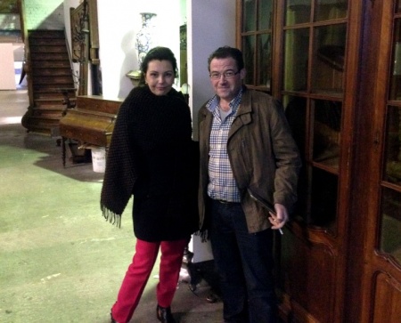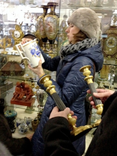 | Виктор Владимирович активно изучал все антикварные музыкальные инструменты, попадавшие ему на ходу. | Ирина Александровна с хозяином антикварной торговли |