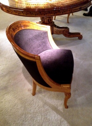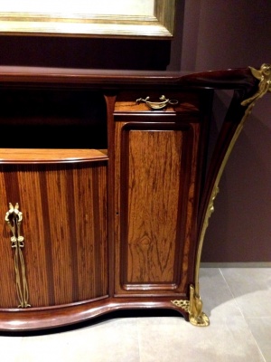 Далее мы побывали на BRAFA в третий раз. В это последнее посещение, мы смотрели вещи на некоторых стендах. Виктор Владимирович Музыка обращал наше внимание на соотношение цены и возможных скрытых реставраций или подмены деталей. Например, передние ножки у этого кресла… |