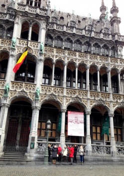 Очень-очень холодный день и сырой. Мы подготовлены, казалось бы, хорошо (низкие каблуки и зонты), но, оказывается, без шапок и перчаток не обойтись! В этот день нас ждала обзорная пешеходная экскурсия по Королевской площади. В 1998 году площадь занесли в реестр Всемирного наследия ЮНЕСКО. Каждые два года Гран-плас накрывают цветочным ковром, который изображает разные символы и события. |