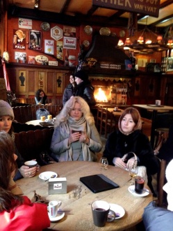 | Не долго мы выдержали пронзительность брюссельского холода и, благо что знаменитое кафе напротив писающего мальчика, в это время приняло нас глитвейном и коньяком. Здесь мы, сидя у огня, продолжили внимательно вслушиваться в информацию о достопримечательностях, окружающих нас. | ![]() |