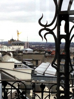 | Вид из окна кафе в музее музыки, один из золотых шпилей Брюсселя. |
