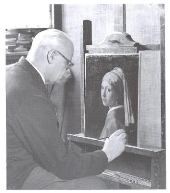 Реставратор Дж.С. Траас работает над «Девушкой с жемчужной сережкой» Вермеера |