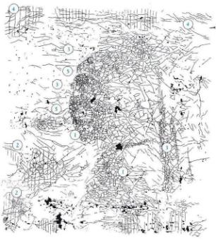 3. Возрастные трещины развивались по мере того, как красочный и грунтовый слои становились хрупкими и ломались.