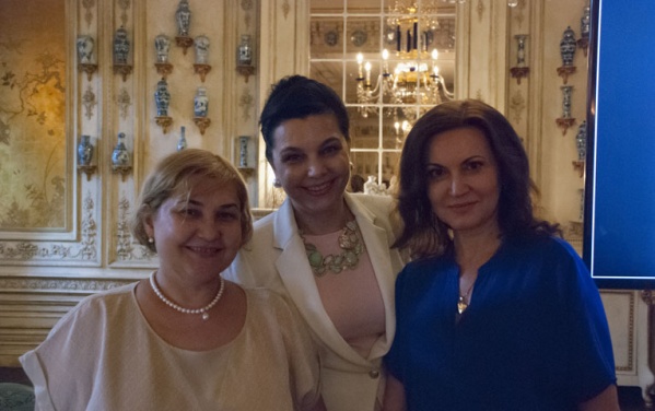 Слева направо (Мунтян Т.Н — хранитель коллекции Фаберже в Оружейной палате; Колосова И.А. — учредитель Института Арт Бизнеса и Антиквариата; Бабаян А. — директор галереи Турандот Антик).