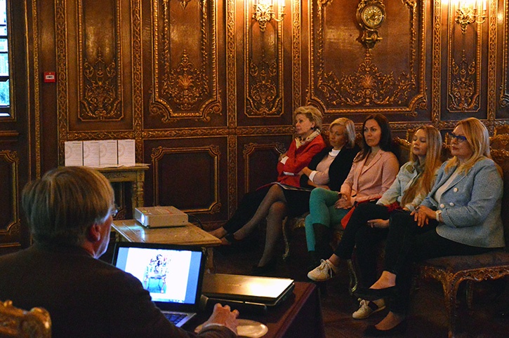Занятие вели арт-директор галереи «Наше Наследие» Виктор Владимирович Музыка и специалист по современному фарфору Светлана Олеговна Виноградова, владелица салона «Элемент интерьера», ранее — директор по развитию Дома Фарфора.