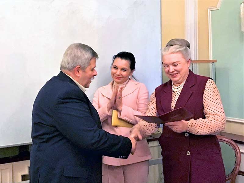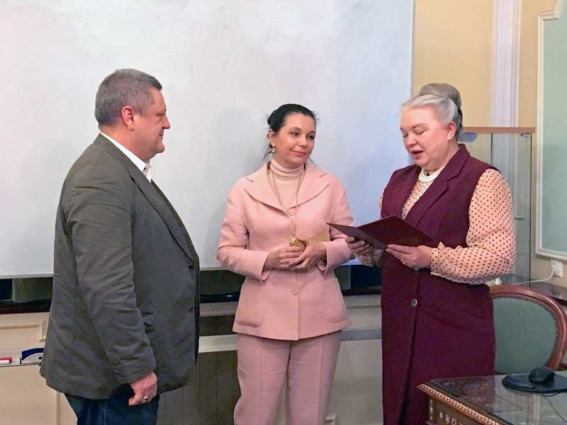 Учредитель Института арт-бизнеса и антиквариата Ирина Александровна Колосова освятила порядок защиты дипломных работ и пожелала выпускникам удачного выступления.