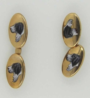 Запонки, декорированные эмалевым изображением головы собаки