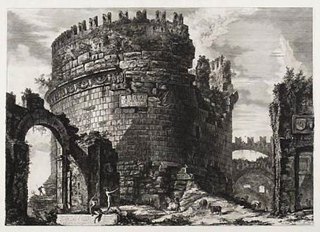 Следуем по знаменитой Аппиевой дороге - самой значимой из античных общественных дорог Рима. Дорога, проложенная в 312 году до н. э. при цензоре Аппии Клавдии Цеке, проходила из Рима в Капую, позднее была проведена до Брундизия. Через неё было налажено сообщение Рима с Грецией, Египтом и Малой Азией. Вдоль Аппиевой дороги расположено множество памятников. Нашей главной целью являются гробница Цецилии Метеллы и Пирамида Цестия рядом с Римским некатолическим кладбищем, запечатленные Дж.Б. Пиранези. |