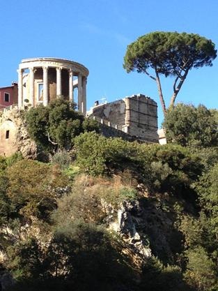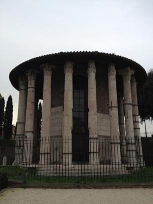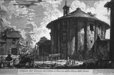 Уже смеркается – темнеть здесь начинает довольно рано, где-то после трех. А в пять загораются фонари уличного освещения. Но все это не может помешать нам – в программе Храм Геркулеса, ранее считавшийся храмом Весты из-за сходства со зданием на территории Форума. Об этом свидетельствует подпись на одной из гравюр Дж.Б. Пиранези. |