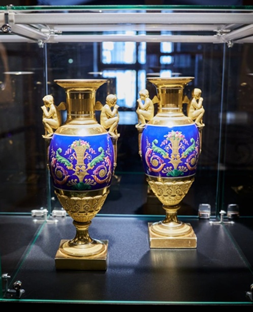 Парадные дворцовые вазы, приобретённые для императрицы Марии Александровны. Они проектировались архитекторами для оформления дворцовых покоев российских монархов, а также выполнялись по заказу членов императорской фамилии.