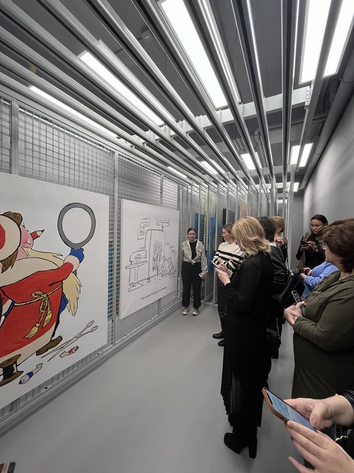 Известно, что коллекционеры и любители искусства обожают обладать полнотой знаний о всех артефактах, находящихся в арт-пространстве. Самое секретное место – хранилище работ. Нам представилась возможность посмотреть, как оно устроено и какие именно художники там хранятся. Куратор проектов Александра показала нам работы многих других современных российских художников: например, Юрия Альберта, Виктора Скерсиса и Ольги Семенихиной.