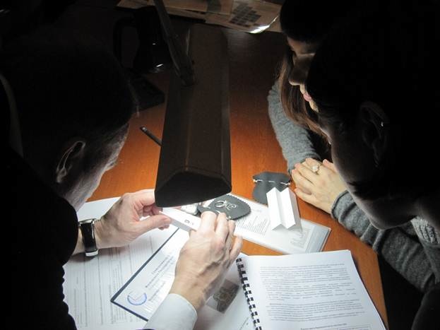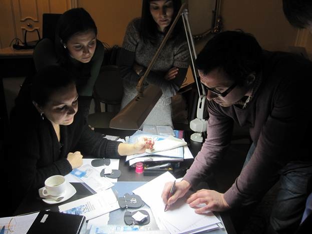 Так ценители становятся профессионалами – выявление «Темных зон» в бриллианте на практическом занятии в рамках семинара.
