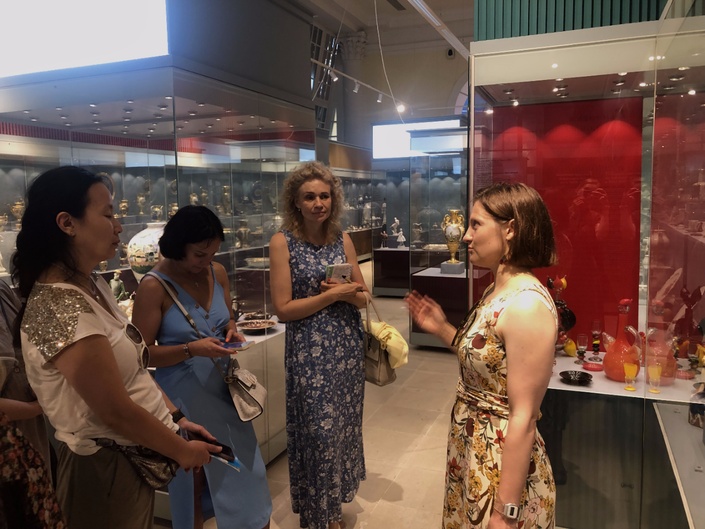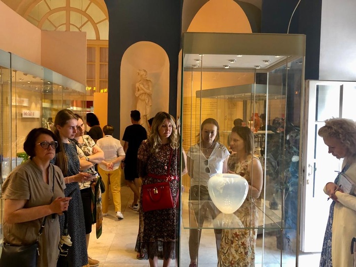 28 июля студенты Института провели с хранителем художественного стекла практическое занятие знаточеского уровня в музее-усадьбе «Кусково». Студенты изучили изящные экспонаты декоративно-прикладного искусства – художественное стекло, фарфор и керамику. А также узнали об особенностях истории их создания. С уникальными авторскими техниками изготовления и секретами неповторимых дизайнов предметов искусства нас познакомила Ивлева Ольга Александровна.