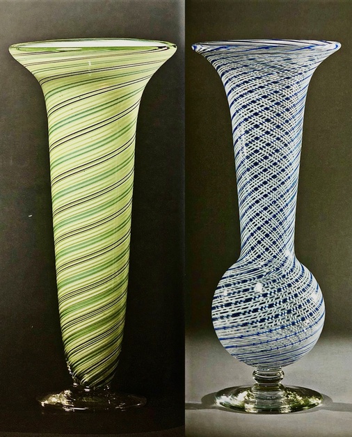 Одним из таких достижений стало воссоздание венецианской нити. Потомственный выдувальщик М.С.Вертузаев, имитируя муррины, вывел свою технику – венецианская лента. Такие хрустальные изделия ручной работы производились на заводе «Красный Гигант». Благодаря наслоению Вертузаев добивался новых цветов: при наслоении бесцветного, зеленого и белого стекла получался молочно-зеленый цвет.
