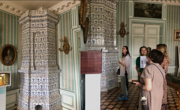 После знакомства с художественным стеклом и фарфором студенты отправились исследовать историческую реконструкцию покоев Николая Петровича Шереметьева – внука Бориса Шереметьева. В северо-восточной части Дворца спрятаны две гостиные, кабинет и спальня. Сейчас покои представляют собой музей Прасковьи Жемчуговой – жены графа, бывшей крепостной актрисы.