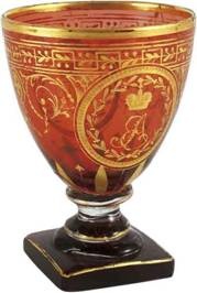 Рюмка рубинового стекла с вензелями «АР» и «ЕА». Императорский стеклянный завод. Конец XVIII века. |