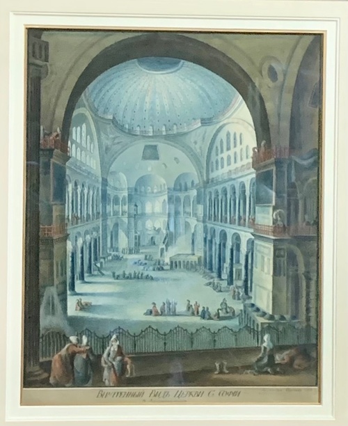 Настоящей жемчужиной коллекции Андрея является исключительная акварельная работа кисти Гавриила Сергеева «Внутренний вид церкви Святой Софии» (Константинополь, ныне Стамбул). Художник прорабатывает мельчайшие детали интерьера собора. Гавриил Сергеев – придворный художник-картограф первым писал Турцию и Египет, в 1792 году был послан императрицей Екатериной II в посольство в Константинополь, где занимался картографией и делал зарисовки своего пути. Уникальность акварели в том , что автор первым из русских художников изобразил внутреннее убранство храма Святой Софии, о чём свидетельствует подпись в нижней левом углу «рисовал с натуры».
